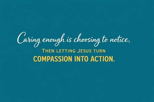 As you reflect on these poems, may you be encouraged to care a little more each day. Caring enough is not about grand gestures but about choosing to notice and allowing Jesus to guide your response. When compassion is put into action, even small steps can bring hope, comfort, and love into the lives of others. Let these words remind you that caring enough is a choice that can quietly change hearts, beginning with your own.