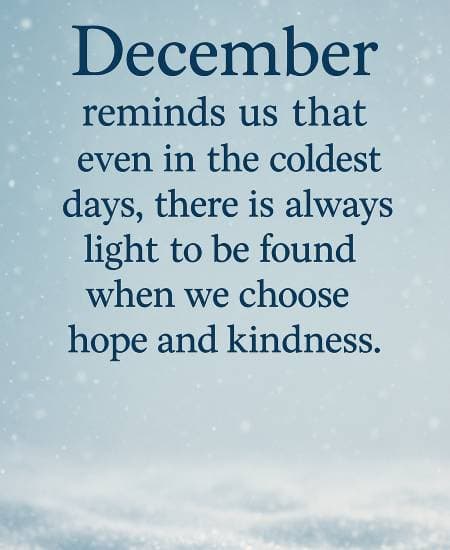 December invites us to pause, reflect, and appreciate the moments that shaped our year. Its quiet beauty and gentle reminders encourage us to look for hope, share kindness, and hold close the people who matter most. As you read these December quotes, may they lift your spirit and help you see the goodness that surrounds you each day. Let the close of this month inspire fresh possibilities and a renewed sense of peace as you move into a new year.