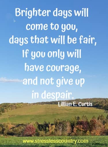 Brighter days will come to you, days that will be fair, if you only will have courage, and not give up in despair.