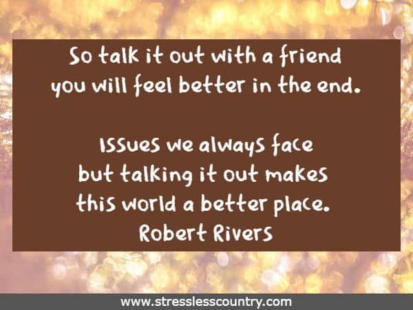 So talk it out with a friend you will feel better in the end. Issues we always face but talking it out makes this world a better place.