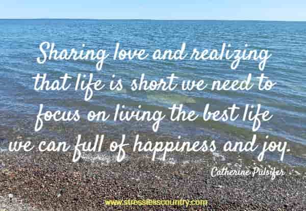 Sharing love and realizing that life is short we need to focus on living the best life we can full of happiness and joy.