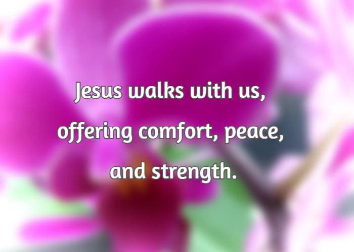 Jesus is always near, walking beside us, carrying us when needed, and guiding us forward.