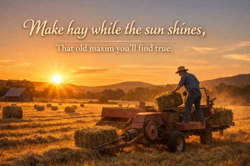 "Make Hay While The Sun Shines" shares a simple truth that still speaks clearly today. Time is precious, and the opportunities before us should not be taken for granted. The poem encourages us to work faithfully, do good while we can, and make wise use of the days we are given. Its message is a helpful reminder that when we use our time well, we build a life marked by purpose, effort, and good character.