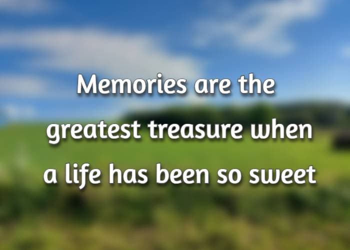Memories are the greatest treasure when a life has been so sweet,