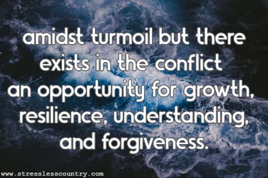 In life, we all experience conflict at one time or another with challenges we face or amidst turmoil but there exists in the conflict an opportunity for growth, resilience, understanding, and forgiveness.